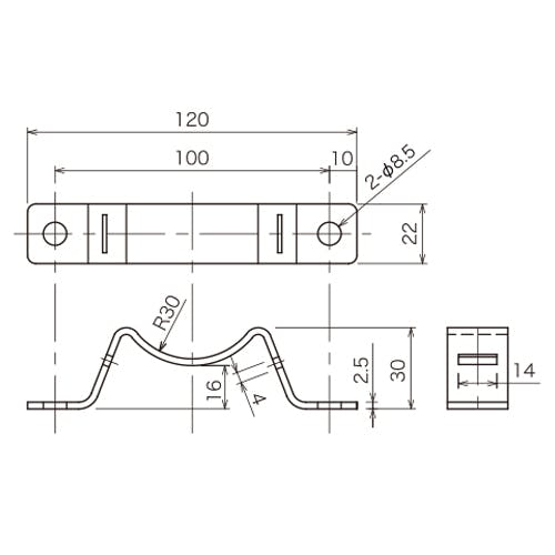 ●メーカー…日恵製作所●型番…A82714●EA815LS-1、-2用固定金具●サイズ…120(W)×22(D)×30(H)mm●取付穴径…φ8.5mm●材質…SUS●バンド幅10~13.5mmのものが使用できます。