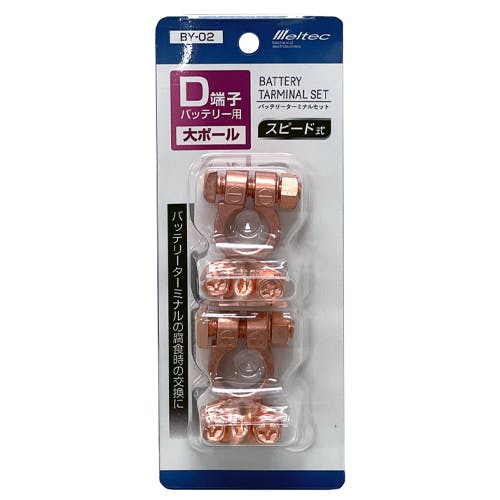 ●メーカー…大自工業(Meltec)●型番…BY-02●適合バッテリー…Dタイプ(大)(D20~H52)●形状…#69Dスピード式(+)(-)●材質…亜鉛ダイキャスト(銅メッキ)●バッテリーターミナルの腐食時の交換に