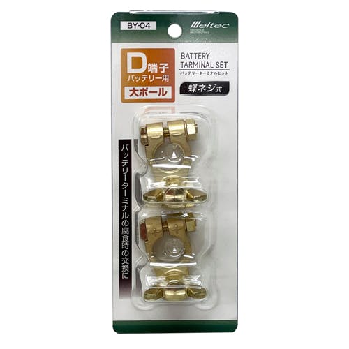●メーカー…大自工業(Meltec)●型番…BY-04●適合バッテリー…Dタイプ(大)(D20~H52)●形状…蝶ねじ式(+)(-)●材質…亜鉛ダイキャスト(真鍮メッキ)●自動車用バッテリーターミナルの腐食時、破損時の交換に