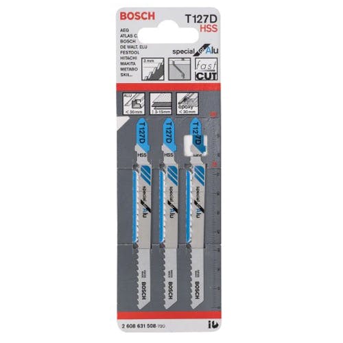 ●メーカー…ボッシュ●型番…T-127D/3●全長(mm)…100●山数…8●シャンク…Tシャンク●入数…3枚●用途…軟鋼板3.0~15mm、アルミ~30mm、プラスチック~30mm、FRP~20mm●刃厚(mm)…1.0●有効長(mm)…74●材質…ハイス●切断タイプ…直線切断●金工用、アルミニウム・非鉄金属用(鋼・真鋳・亜鉛等)