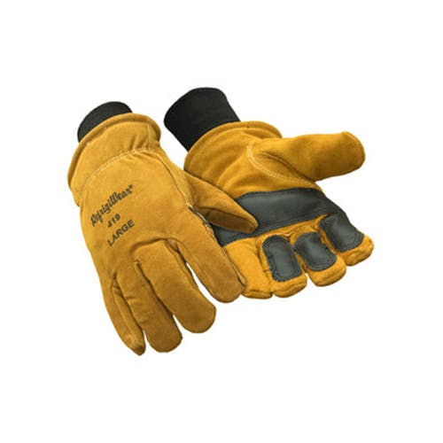 ●材質…牛革●適応温度…約-34℃●サイズ…L●全長…約280mm●厚み…9mm●掌周り…320mm●中指長さ…90mm●重量…400g●耐久力のある牛薄革にシンシュレートと目の粗い発泡ラバーを裏地に使用。●手のひら部分は耐久性を強化してあります。●手首部分にはニット絞りを使用、風が入りにくくなっています。