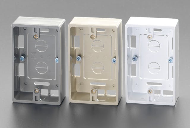 ●メーカー…未来工業●型番…MSB-1J●材質…難燃性ABS樹脂●差込モール…1個用●カラー…ベージュ●サイズ…74×120.5×38mm●壁際配線ができる様にサイドにもノックアウトを設けております。●適合モール…EA947HM-1~-113