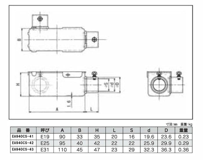 ●呼び…E19●サイズ…90×33×35mm●材質…スチール●L形二方出