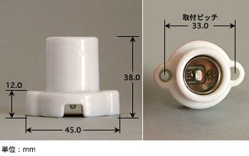 ●定格容量…3A・300V●磁器製●受金…E17●サイズ…φ45×38mm●取付ピッチ…33mm●ネジ穴径…φ3mm●端子ねじ(取付済)