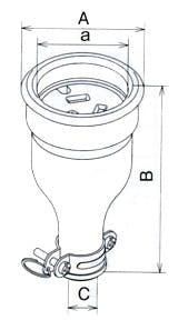 ●メーカー…明工社●型番…MC2614-N●防水コネクターボディー●定格…15A 250V●適用電線…1.25・2m平方m●プラグ…3P●サイズ…A:φ58mm a:φ44mm B:105mm C:φ11~13mm●全長…97mm●RoHS対応