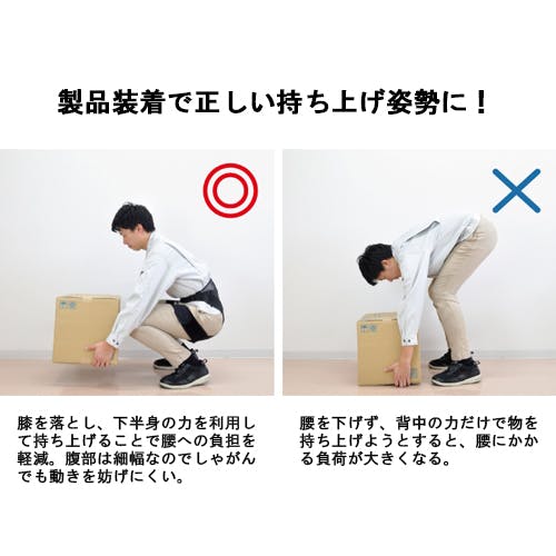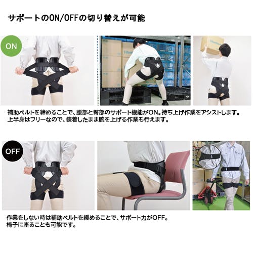 ●サイズ…M●ウエスト周囲…70~90cm●大腿周囲…45~65cm●重量(g)…377●材質…ポリエステル、ナイロン、ポリウレタン●簡易的な脱着で繰り返しの持ち上げ作業をサポートしたい方におすすめです●腰への負担がかかりにくい荷物の持ち方にアシストする構造になっています。●下半身をしっかりサポートし、重量物の運搬など繰り返し行われる持ち上げ作業の負担を軽減します。