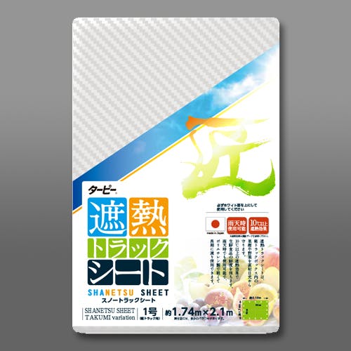 ●サイズ(m)…1.74×2.1●厚み(mm)…0.3●重量(g)…750●材質…シート本体:ポリエチレンハトメ:アルミニウム●果樹・野菜・鮮魚などの輸送に●雨天時の運搬にお使い頂けます。●カバーがない時と比べ、内部温度が約10℃低くなります。※真夏の炎天下でのメーカー遮熱性比較試験結果より●新鮮さをそのままに。遮熱効果のあるトラックシートです。●日本製