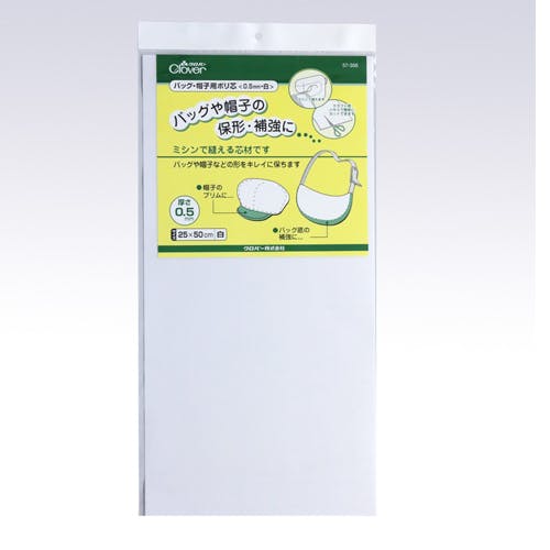●メーカー…クロバー(Clover)●型番…57-356●カラー…白●材質…発泡ポリエチレン100%●幅…250mm●長さ…500mm●厚み…0.5mm●重量…約64g●曲面のバッグの底や、キャップタイプの帽子のつばの保形・補強に最適です。●クラフト用ハサミでカットして、ミシンで縫える芯材です。