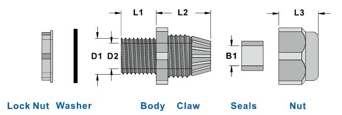 ●適用ケーブル径…5~10mm●下穴径(D1)…16mm●ピッチサイズ…1.5mm●サイズ(mm)…D2:10.9B1:10.5L1:15.5L2:23.4L3:16.9●材質…ナイロン●防水保護等級…IP68●入数は1個入りです。