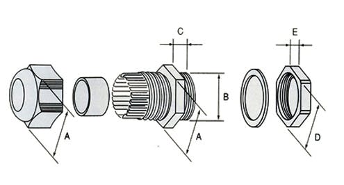 ●ケーブル外径…7~14mm●ねじの呼び…PG16●取付穴径…23.0mm●サイズ(mm)…A:27、B:22.5、C:10、D:27、E:6●全長…約40mm●材質…本体:ナイロン6、ロックナット:ナイロン6・ガラス(25%)●使用温度範囲…-25℃~+100℃●入数は1個入りです。