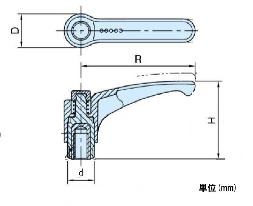 ●メーカー…イマオコーポレーション●型番…EAL78AX25●材質…レバー・ボタン:ポリアミド(ガラス繊維強化)、ねじ:亜鉛メッキ(SUM22L)●サイズ(mm)…ねじ:M12×25R:78H:54d:19D:24.5●レバー部全体の曲線デザインが快適な握り感を与えます。●本体下部にローレットが施してありますので、初期の締付け作業が楽にできます。●RoHS対応品