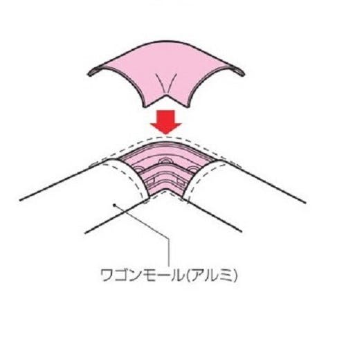 ●メーカー…未来工業●型番…OPM-4A●材質…PVC●カラー…シルバー●適合モール…EA947HM-302●サイズ…B:50.4、H:12.7、L:69.2、l:7、R:26mm●ワゴンモールの蓋の上からかぶせるだけで取付できます。