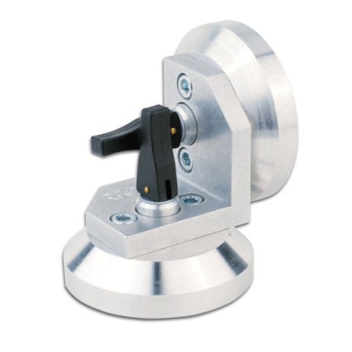 ●90°サクションホルダー●サイズ…75(W)×76(D)×75(H)mm●パットサイズ…φ55mm●パッド材質…特殊ゴム●重量…262g●小さいガラス板の接続時に使用して下さい。●安定した吸引力になりました。●吸着面に小さな突起が付いていて、取外しが楽に行えます。