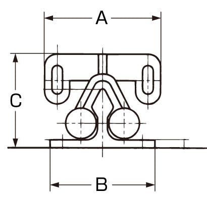 ●サイズ(mm)…A:28.4、B:14.8、C:24.7●材質…本体:ステンレス(SUS430)ローラー部:ナイロン●仕上…研磨●穴径…3×7.3mm●重量…10g●取付ねじ無し●ステンレス製ですので、耐蝕性に優れています。●各種キャビネット等に取り付けてください。