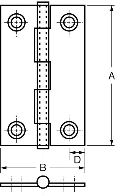 ●サイズ(mm)…A:32、B:22、D:4.0●厚み…0.8mm●穴径…3.4mm●材質…ステンレス(SUS304)●仕上げ…バレル研磨仕上●穴数…4●入数…2枚●木ねじ付