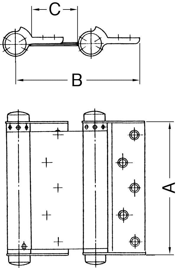 ●材質…スチール●仕上げ…黒塗装仕上●穴数…8●サイズ(mm)…A:77B:82C:25●穴径…5mm●適合扉厚…23~25mm●入数…2個●扉を内・外どちらにでも開けることができます。●タッピングねじ皿4×23、16本付●常に扉が閉じた状態になるようにばねが内蔵されています。