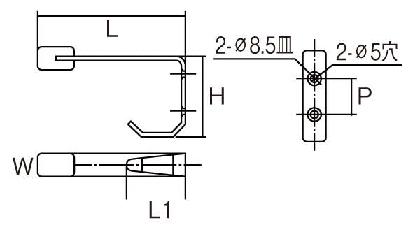 ●材質…ステンレス(SUS304)+ゴム●ヘアーライン仕上げ●サイズ…L:150mm、L1:40mm、W:16mm、H:55mm、P:25mm