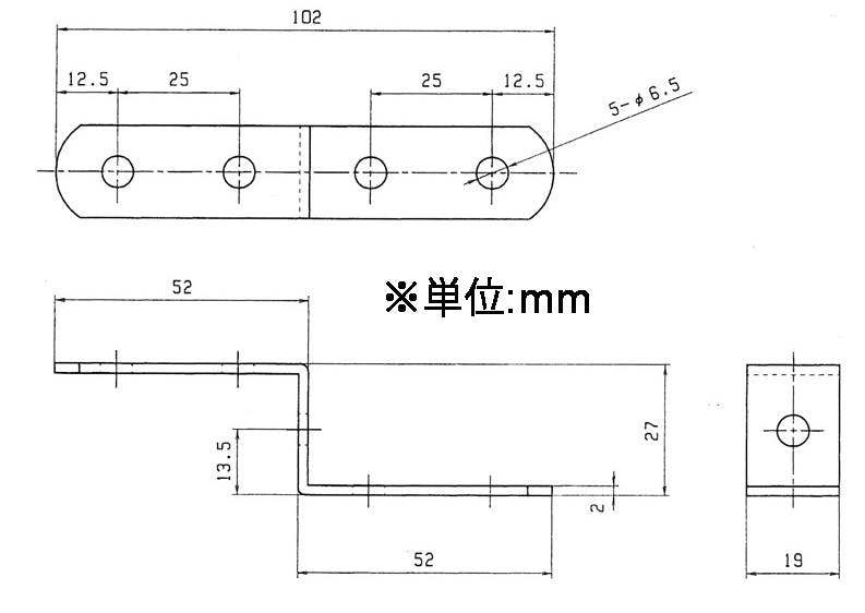 ●全長…102mm●穴径…6.5mm●穴数…5●幅…19mm●厚み…2mm●材質…ステンレス(SUS304)●入数…1個●取付ねじ無し