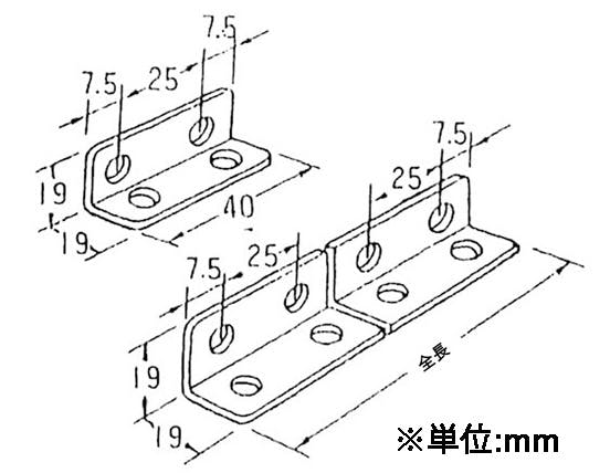 ●全長…590mm●穴径…6.2mm●穴数…48●幅×幅…19×19mm●厚み…2mm●材質…ステンレス(SUS304)●入数…1個●取付ねじ無し