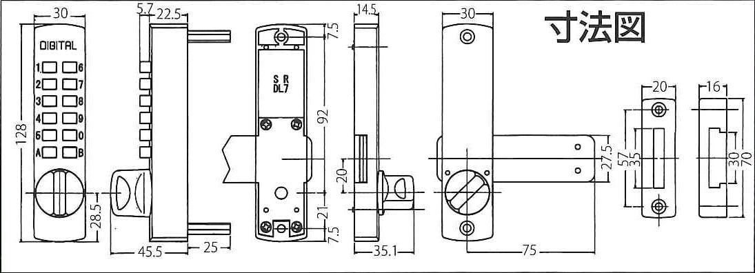 ●材質…亜鉛ダイカスト●鉄扉、アルミサッシ扉、木製扉用●本体サイズ…30(W)×128(H)●ドア厚…25~50mm●内側:サムターン、外側:プッシュボタン(番号設定可能)●既存のドアに増設する事により、1ドア2ロックの安全な防犯錠となります。●スペーサー、ストライク、取付ねじ付