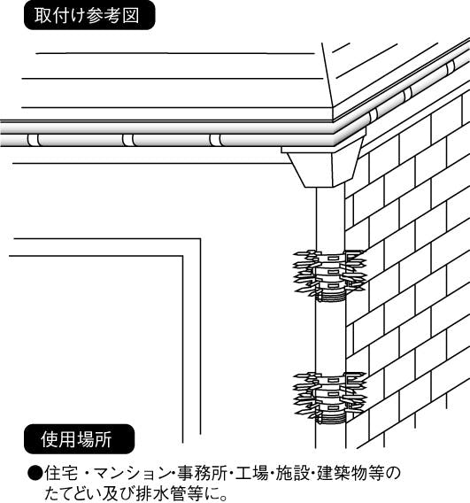 ●材質…ステンレス(SUS304)●使用場所…住宅、マンション、事務所、工場、施設、建築物等のたてどい及び排水管等に●1ヶ所に取り付けるだけでなく、2ヶ所、3ヶ所と複数取り付けると、より効果的にご利用できます。●忍び返し…2本●バンド長…215mm●パイプ外径…60mm(VP50、VU50・50A用)