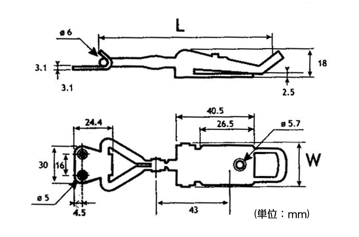 ●材質…ステンレス(SUS304)●全長(L)…90~110mm●幅(W)…30mm●穴径…5.1mm●重量…82g●長さ調整可能●取付ねじ無し