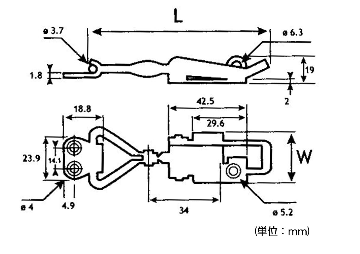 ●材質…ステンレス(SUS304)●全長…85~95mm●幅…27mm●穴径…4.0mm●錠穴径…6.4mm●重量…47g●長さ調整可能●ツル径6mmまでの南京錠での施錠ができます。●取付ねじ無し