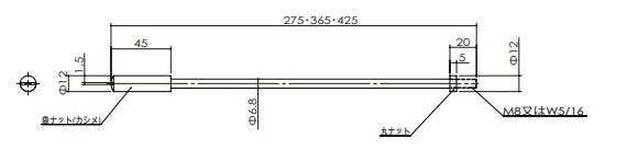 ●[EA951LP-1用]フランス落とし用ロット棒●材質…スチール(ユニクロメッキ仕上)●取付穴径…M8●全長…275mm