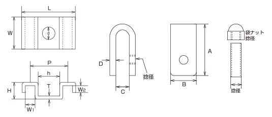 ●サイズ(mm)…L:42、W:25、d:10、P:31、H:13.5、h:20、W1:7、W2:6、T:2、A:39、B:19、C:10.5、D:4.5、捻径:M-8 ●ねじサイズ…M8×25●材質…SUS304