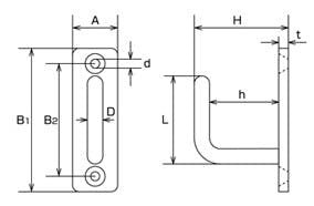 ●奥行×高さ…21.5×36mm●幅…12mm●使用荷重…6kg●穴径…3.2mm●サイズ(mm)…D:4、A:12、B1:36、B2:28、h:15、H:21.5、d:3.2、L:20、t:2.5●材質…ステンレス(SUS304)●電解研磨仕上げ●取付ねじ無し