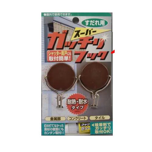 ●サイズ(W×D×H)mm…約40×21×53●材質…本体:ABS樹脂、フック:ステンレス、接着剤:化学反応形接着剤(種類)・シアノアクリレート(成分)●耐荷重…3kg(2個使用時)※取付け場所や材質により多少変わります●耐熱・耐水仕様●屋外で使用できます。●金属・コンクリート・タイルに強力接着剤でガッチリ取付け●釘の打てなかった素材の壁面にもカンタン取付