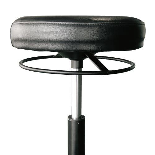 ●※注意※…【お客様組立品】●座面サイズ…φ335mm●サイズ(W×D×H)mm…600×600×430~530(H)●材質…鉄、ナイロン●脚幅…560mm●カラー…黒●重量…6kg●耐荷重…135kg●キャスター…自在×5●メンテサービス時はもちろん、作業台でのワークチェアにも最適●ガス圧調整式(高さ:430mm~530mm)