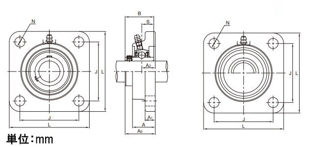 ●メーカー…旭精工●型番…MUCF208VN,Y●呼び番号MUCF形…208●軸径(mm)…40●サイズ(mm)…L:130、A:36、J:102、N:16、A1:11、A2:21、A0:51.2、B:49.2、S:19●材質…本体:ステンレス鋳鋼ボール:ステンレス鋼●ステンレスシリーズ●止めねじ付●円筒穴形