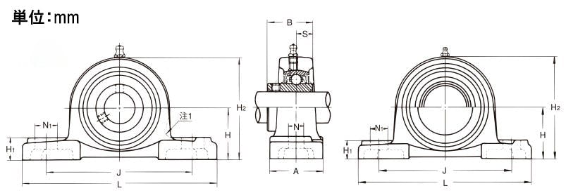 ●メーカー…旭精工●型番…UCP315●呼び番号UCP形…315●軸径(mm)…75●サイズ(mm)…H:100、L:380、A:100、J:290、N:27、N1:40、H1:40、H2:197、H5:208、B:82、S:32●材質…本体::ねずみ鋳鉄品ボール:高炭素クロム軸受鋼●ボルトサイズ…M22●止めねじ付●円筒穴形