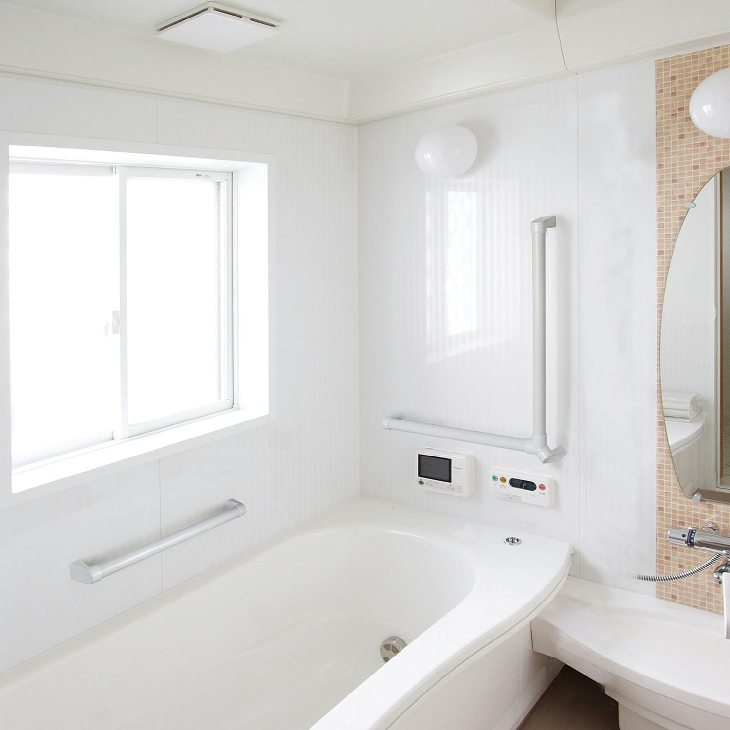 ●サイズ(mm)…600×600●高さ (mm)…78.1●パイプ径…φ35mm●取付穴径…4mm●材質…抗菌AES樹脂+ステンレス●付属品…ブラケット取付ねじ(φ4×30mm)、プラグ(φ6×25mm)、てすり棒固定ねじ(φ3×10mm)●左右兼用●浴室やトイレ、洗面所などの水まわりや、勝手口・ベランダなどの屋外にも取付可能!●L型/抗菌・防カビ