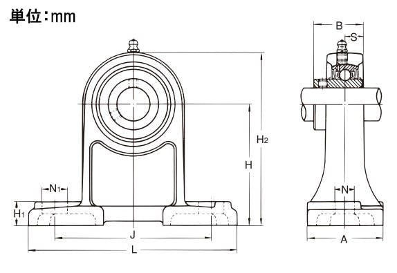 ●メーカー…旭精工●型番…UCPH204●呼び番号UCPH形…204●軸径(mm)…20●サイズ(mm)…H:70、L:127、A:40、J:95、N:13、N1:19、H1:15、H2:101、B:31、S:12.7●材質…本体:ねずみ鋳鉄品ボール:高炭素クロム軸受鋼●止めねじ付●円筒穴形