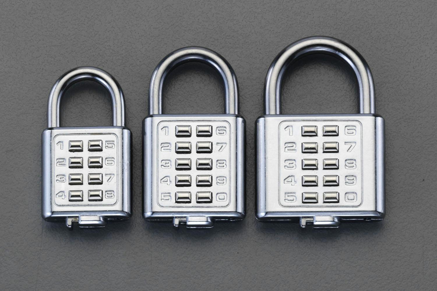 ●プッシュボタン式●開錠番号桁数…4桁●番号設定不可●材質…本体:亜鉛合金、ツル:真鍮●クロムメッキ仕上●ボタン数…10個(1~10まで)●全長…76mm●幅…50mm●ツル径…7mm●クリアランス…タテ:25mm、ヨコ:29mm●重量…141g