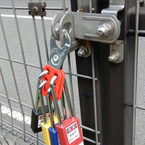 ●材質…スチール●6重ロックアウト●穴径…φ9mm●複数の担当者が安全を確認しなければ、ロックを解除することはできません。●リング径…38mm●幅…62mm●全長…129mm