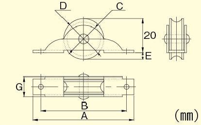 ●材質…枠(SPCC、MFZn2-Cメッキ)、車(耐衝撃性特殊ナイロン)●耐荷重(2個)…15kg●サイズA…60mm●サイズB…51mm●サイズC…20mm●サイズD…24mm●サイズE…4mm●サイズG…12mm
