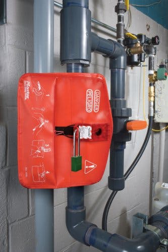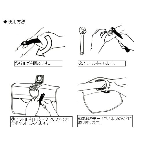 ●ボールバルブの安全のためのロックアウト●材質…本体:ポリエステル、 金具:PVC、HDPEプラスチック●適応温度範囲…-40℃~121℃●サイズ…本体:325×290×37(T)mm テープ:25×700(L)mm●鍵穴径…8mm●重量…約240g●市販の南京錠で施錠します。●南京錠は別売です。