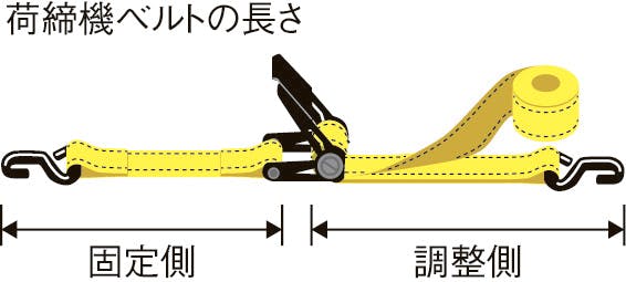 ●使用荷重…150kg●ベルトの長さ…固定側:0.22m、調整側:1.8m●ベルト幅…25mm(ポリエステル)●フック内径…27mm