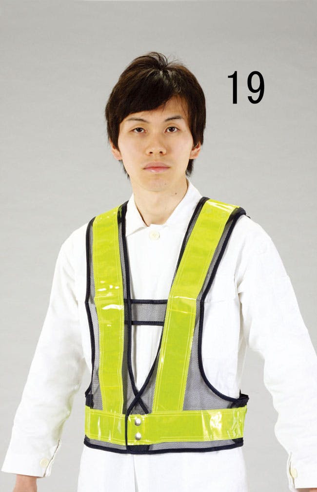 ●材質…テープ部:PVC、ベスト:ナイロンメッシュ●ウエスト…最大135cm●着丈…50~60cm●テープ幅…60mm●メッシュカラー…黄●反射テープカラー…イエロー●高輝度反射テープにより昼夜を問わず優れた視認性を発揮します。●サイズはマジックテープで調整可能(両サイドと前と肩についています)●前開き防止ベルト付
