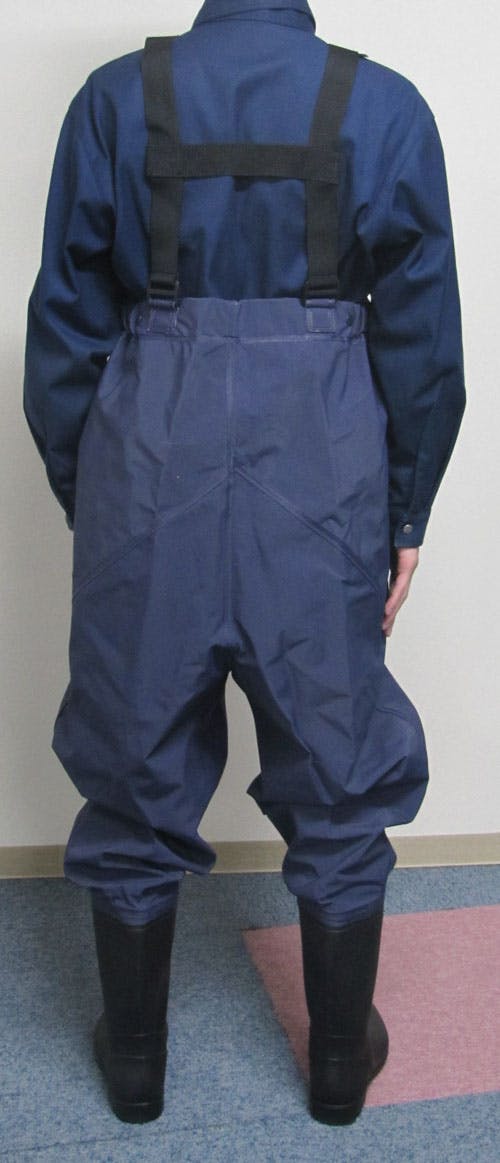 ●材質…表・靴・靴底:PVC塩化ビニール●靴サイズ…L(25.5~26.0cm)●胴回り…130cm●股下…78cm●太もも周り…74cm●胸当て丈…50cm●重量…2460g●肩紐バックル式、長さ調整可能●背面・脇部分にゴム入り