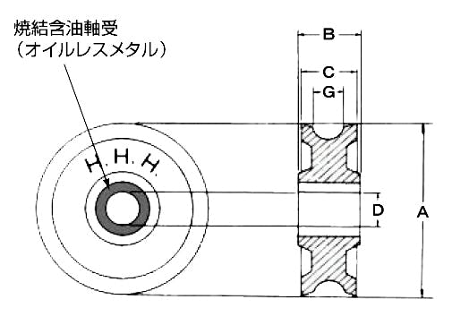 ●メーカー…スリーエッチ●型番…V100●車径(A)…100mm●サイズ…B:26mm、C:24mm、D(軸径):15mm、G:14mm●使用ロープ径…~14mm●材質…スチール●滑車の交換用部品です。●高速回転には不向きですので、ベアリング入り(EA987HR-13)をご使用下さい。
