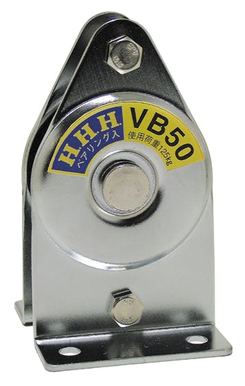 ●メーカー…スリーエッチ●型番…VB50●使用荷重…125kg●車径…50mm●使用ロープ径…~8mm●サイズ… A:100mm、B:58mm、C:62mm、D:9mm、 E:10mm、F:10mm、G:15mm、I:6.5mm●重量…380g●材質…鉄●軸受…ベアリング●荷役搬送作業やロープガイドとして。●ベアリング入りですので、 回転がスムーズです。