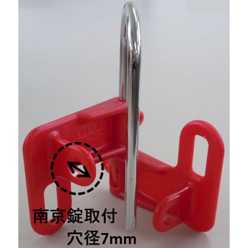 ●小さいロックアウトポイントに最適●材質…本体:プラスチック、ツル:スチール●サイズ…57(W)×30(t)×42(H)mm●クリアランス(縦×横)…33×26mm●ツル径…4mm●許容数量…2個●取付穴径…7mm●重量…27g●本体の前後に1個ずつ南京錠が取付けられます。