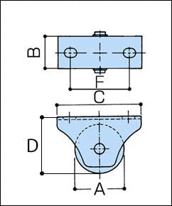 ●メーカー…ヤボシ●型番…K90V●耐荷重(2個)…450kg●戸車形状…V型●ベアリング…密閉式ベアリング入り●材質…枠:鉄SPH(クロメートメッキ)、車:鋳鉄●サイズA…90mm●サイズB…42mm●サイズC…200mm●サイズD…100mm●サイズF…160mm●使用ボルト…M20×60