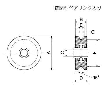 ●メーカー…ヤボシ●型番…K90V-N●戸車形状…V型●材質…鋳鉄●ベアリング…密閉型ベアリング入り●車輪径×幅(A×B)…95×29mm●軸径(C)…20mm●使用ボルト…M20×60