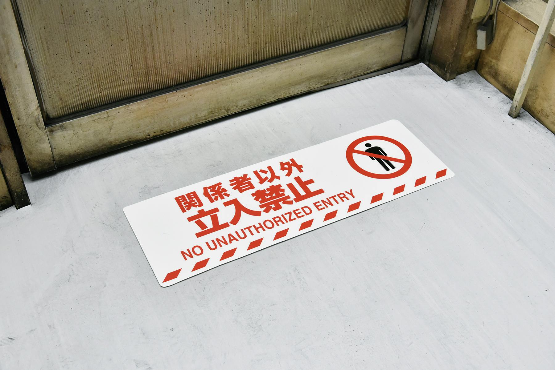 ●サイズ…200×600×0.5(t)mm●材質…基材:PVC、粘着:アクリル系●粘着式、剥離紙付●日本語と英語の2ヶ国語表記●内容…関係者以外立入禁止