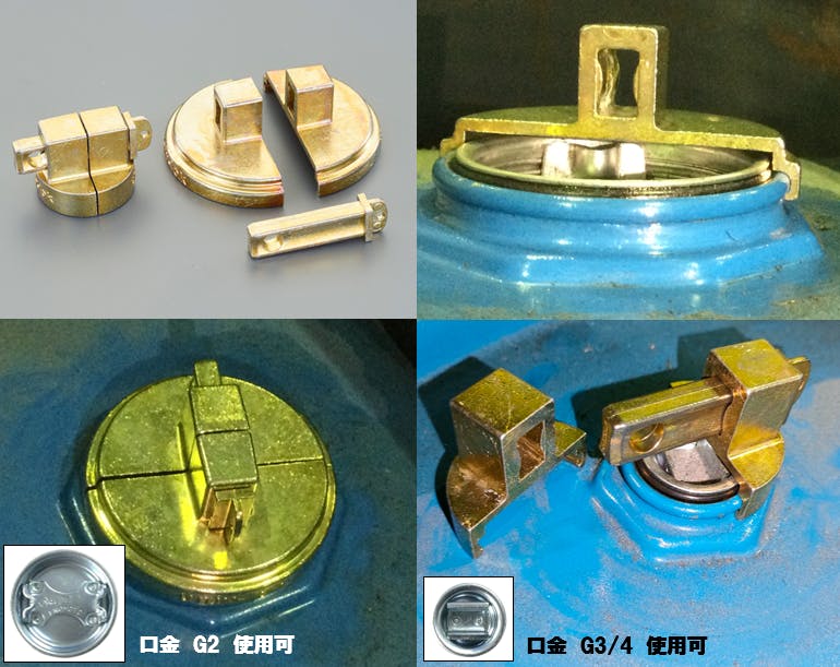 ●材質…亜鉛ダイキャスト(ノンスパーク)●サイズ…大栓用:φ75×30(H)mm、小栓用:φ38×30(H)mm●重量…270g●ドラム缶のプラグ部ロックに●適合栓サイズ…2"NPT、3/4"NPT●南京錠取付用穴径…φ7.13mm●南京錠と組み合わせてドラム缶の口栓部をロックできます。